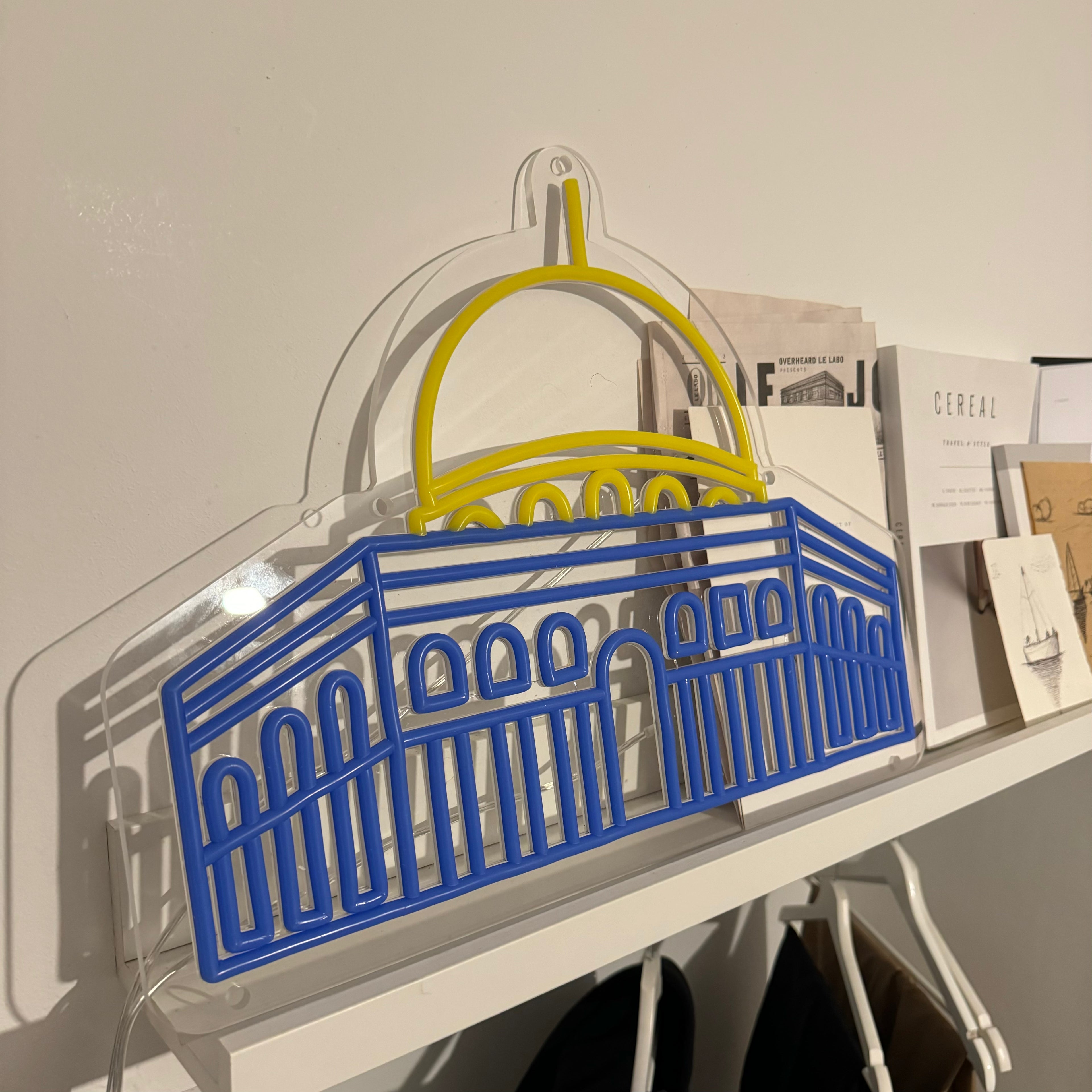 Behold the iconic golden dome bathed in a soft neon glow, capturing the majesty and significance of the Dome of the Rock. The warm hues emulate the awe-inspiring beauty of this sacred site, creating an ambiance that is both modern and reverential.
