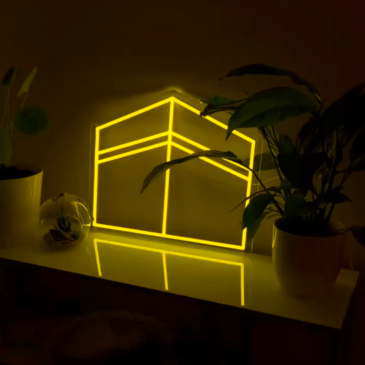 Each sign is made of a neon flex material, consisting of PVC or Silicon piping with LED lights, that is mounted on a recycled acrylic board. These materials allow us to create realistic neon signs, with bright lights and intense color, while being more durable, affordable, and sustainable than traditional neon.